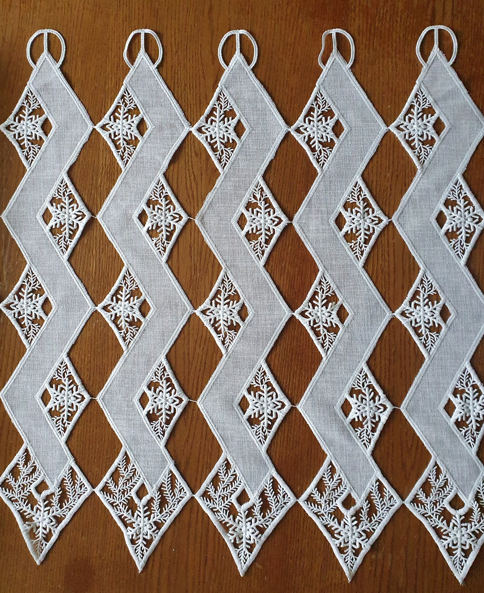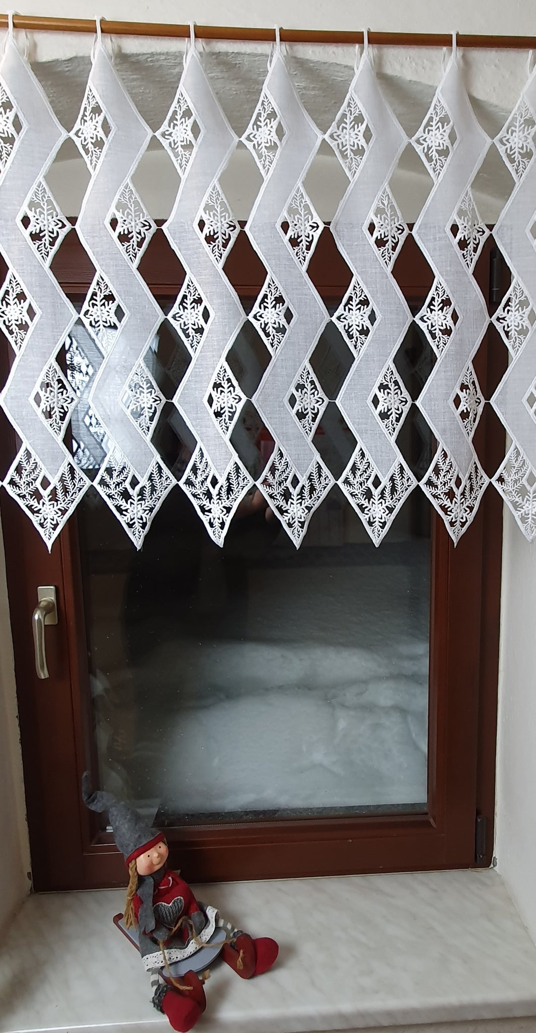 Plauener Spitze Kurzgardine Schneekristalle Höhe 60cm